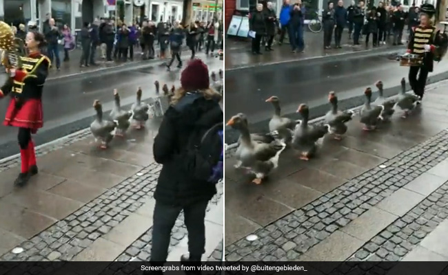 इन दिनों सोशल मीडिया पर बर्ड ब्रिगेड का एक जबरदस्त वीडियो तेजी से वायरल हो रहा है. इस वीडियो में गीज़ (Geese) यानि हंसों का एक समूह पूरे डिसिप्लिन के साथ बीट पर परेड करता हुआ नजर आ रहा है. ये वायरल वीडियो डेनमार्क का बताया जा रहा है, जहां हंसों की परेड को सीटी बजाते हुए एक महिला लीड करती हुई देखी जा सकती है. इसी के साथ बर्ड ब्रिगेड के पीछे एक महिला ड्रम बजाते हुए भी नजर आ रही है. वीडियो में ये बर्ड ब्रिगेड पूरे अनुशासन और अपने सधे हुए कदमों के साथ शानदार परेड करते हुए हर किसी का दिल जीत रही है. उस स्ट्रीट पर मौजूद हर कोई इस खूबसूरत नजारे का साक्षी बनते हुए नजर आ रहा है. ढोल की थाप पर कलहंस एक-दूसरे के साथ कदम से कदम मिलाते हुए चल रहे हैं. यकीनन परेड तो आपने भी कई देखी होंगी लेकिन बर्ड ब्रिगेड की ये परेड अपने आप में बेहद ख़ास है.