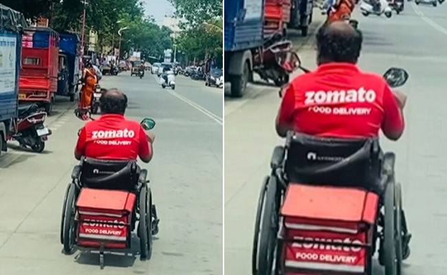 अक्सर इंटरनेट पर ऐसे वीडियोज सामने आते रहते हैं, जो कई बार प्रेरणा देने का काम करते हैं. हाल ही में वायरल (viral) इस वीडियो को देखकर इस बात का अंदाजा लगाया जा सकता है, जिसमें एक शख्स अपनी कमजोरी को दरकिनार कर जिंदगी जीने का एक अलग ही नजरिया पेश कर रहा है. वीडियो की शुरुआत में देखा जा सकता है कि कैसे एक शख्स व्हीलचेयर (wheelchair) पर है और Zomato के लिए डिलिवरी का काम कर रहा है. वीडियो में देखा जा सकता है कि शख्स व्हील चेयर (food delivery boy) पर अपना ऑर्डर डिलिवर करने के लिए आगे बढ़ता नजर आ रहा है. व्हील चेयर में मोटर लगी है, ताकि वह आराम से एक जगह से दूसरी जगह आसानी से सफर कर सके.