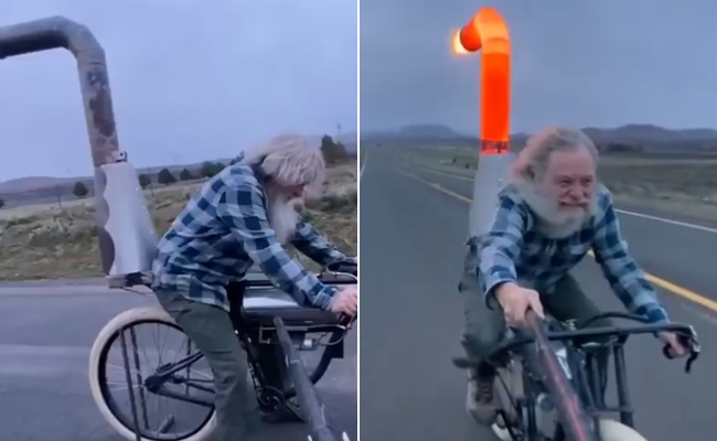 सोशल मीडिया पर वायरल इस वीडियो में एक बुजुर्ग शख्स ने जो कर दिखाया है, वो सच में काबिले तारीफ है. बुजुर्ग शख्स ने अपनी जुगाड़ से देसी सी दिखने वाली साइकिल को 'रॉकेट' बना दिया है. जुगाड़ ऐसी की साइकिल 'रॉकेट' के माफिक दौड़ने लगी. वीडियो में देखा जा सकता है कि साइकिल में आग निकलने वाली एक चिमनी लगा रखी है. उस चिमनी में से ठीक वैसे ही आग निकल रही है, जैसे किसी 'रॉकेट' में से निकलती हो. वीडियो में देखा जा सकता है कि चिमनी से आग निकलते है साइकिल 'रॉकेट' की तरह दौड़ने लगती है. वीडियो में साइकिल की स्पीड देकर आप इस बात का अंदाजा लगा सकते हैं.