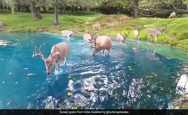 Deer Enjoying Clear Water In Switzerland: इंटरनेट की दुनिया में अक्सर ऐसे वीडियोज देखने को मिल जाते है, जो किसी सपने से कम नहीं लगते, जिन्हें जितनी बार भी देखो उतना कम है. हाल ही में एक ऐसा ही वीडियो सामने आया है, जिसे देखकर आप किसी ओर ही दुनिया में खो जाएंगे. वीडियो स्विजरलैंड का बताया जा रहा है, जहां एक खूबसूरत नीली चमचमाती इस झील में एक या दो नहीं, बल्कि हिरणों का एक बड़ा झुंड पानी पीता नजर आ रहा है. यह नजारा वाकई शानदार है, जिसे आपको बार-बार देखने का मन करेगा.