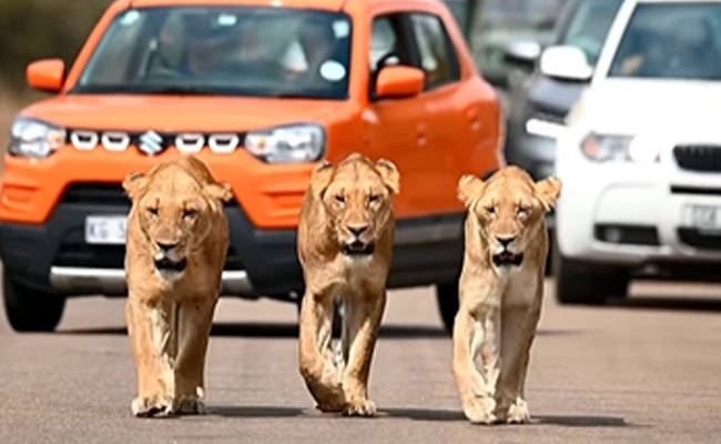 वायरल हो रहे इस वीडियो में तीन शेरनियों को क्रूगर नेशनल पार्क (Kruger National Park) की सबसे व्यस्त सड़क पर चलते देखा जा रहा है. बता दें कि, नेशनल पार्क उत्तरपूर्वी दक्षिण अफ्रीका का सबसे बड़ा वाइल्ड लाइफ रिजर्व है, जहां सबसे बड़ी संख्या में जंगली जानवर रहते हैं, जिन्हें देखने के लिए हर साल सैलानियों का तांता लगा रहता है. यहां हाल ही में सड़क पर पर्यटकों के काफिले को रोक तीन शेरनियां अपने अलग अंदाज में चलती दिखाई दे रही है, जिसका वीडियो इंटरनेट पर खूब देखा और शेयर किया जा रहा है.