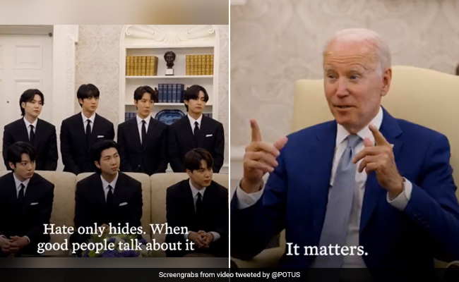 इसे POTUS ने अपने ट्विटर हैंडल पर अपलोड किया है, जिसमें देखा जा सकता है कि के पॉप गैंग के सात सदस्य ब्लैक टक्सिडो में हैं. वो पूरे सलीके से व्हाइट हाउस में एंटर कर रहे हैं. प्रेसिडेंट से मुखातिब होते ही बैंड के सदस्य कहते हैं कि आपसे मिलना हमारे लिए सम्मान की बात है, जिसके जवाब में राष्ट्रपति बाइडेन ये कहते सुने जा सकते हैं कि, 'आप सभी का व्हाइट हाउस में स्वागत है.'