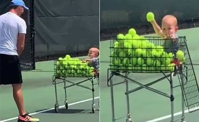वायरल हो रहे इस वीडियो की शुरुआत में एक टेनिस कोर्ट (Tennis Court) पर पिता अपने छोटे से बच्चे के साथ नजर आता है. वीडियो (Trending Video) में देखा जा सकता है कि बच्चा एक बॉल से भरी टोकरी के अंदर बैठा हुआ है. इस दौरान बच्चा अपने पिता को प्रैक्टिस (Practice) करने में मदद कर रहा है. वीडियो में बच्चा बारी-बारी से पिता को टेनिस बॉल (Tennis Ball) सर्व करता है. जैसे ही पिता बॉल को टेनिस रैकिट से हिट करता है, वैसे ही बच्चा दूसरी बॉल फेंक देता है. इस दौरान बच्चे के चेहरे पर एक बड़ी सी मुस्कुराहट (Smile) नजर आती है.