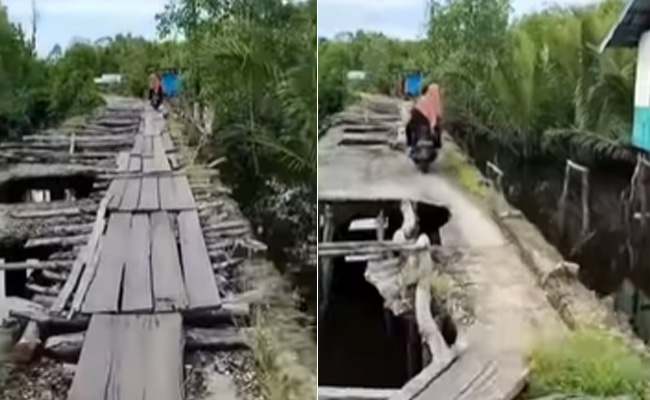 इंस्टाग्राम पर rvcjinsta नाम से बने पेज पर यह मजेदार वीडियो शेयर किया है और इसे पोस्ट कर लिखा गया है कि, 'दिल दहल गया.' यहां पर लकड़ियों के टुकड़ों से एक रास्ता बनाया गया है, जिसे स्कूटर पर सवार कुछ लोग पार करते हुए नजर आ रहे हैं. इस रास्ते के एक तरफ तो लकड़ियां लगी हुई है, लेकिन दूसरी तरफ नाले में पानी भरा हुआ है. अगर इन दोनों का बैलेंस जरा भी बिगड़ता, तो सीधे यह नाले में जाकर गिर जाते. वहीं, इस वीडियो के दूसरे पार्ट में भी एक कच्चे रास्ते पर एक लड़की स्कूटी चलाती नजर आ रही है. जहां जगह-जगह गड्ढे हैं और उसमें पानी भरा हुआ है.