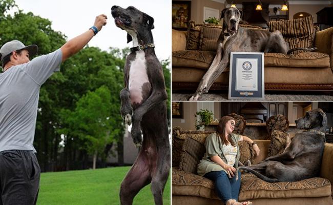 क्या आपने देखा है दुनिया का सबसे लंबा कुत्ता? अगर नहीं, तो हाल में सोशल मीडिया (Social Media) पर वायरल इस वीडियो (Trending News) को देखना तो बनता है. बताया जा रहा है कि जीउस की लंबाई 3 फीट 5.18 इंच है. बता दें कि जीउस एक ग्रेटडेन प्रजाति (Great Dane Breed) का कुत्ता है. कुत्तों की यह नस्ल अपने विशाल आकार के लिए जानी जाती है.