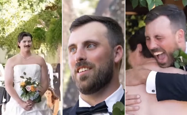 जाहिर है कि अब आपके मन में भी यह सवाल उठ रहा होगा कि, आखिर ऐसा हुआ क्या, तो चलिए आपको बताते हैं कि आखिर दूल्हा हैरान हुआ तो हुआ क्यों. दरअसल, जैसे ही उसने पलट कर देखा तो उसकी दुल्हन की जगह उसका बेस्ट फ्रेंड ब्राइट के गेटअप में सजा हुआ हाथों में फूल लिए उसके नजदीक खड़ा हुआ था. बस फिर क्या उसे देख पहले जोर-जोर से चिल्लाया और फिर हंसते हुए अपने जिग्री दोस्त को अपने गले लगा लिया. इंटरनेट पर वायरल हो रहे इस वीडियो को देखने वालों की हंसी नहीं रुक रही है.