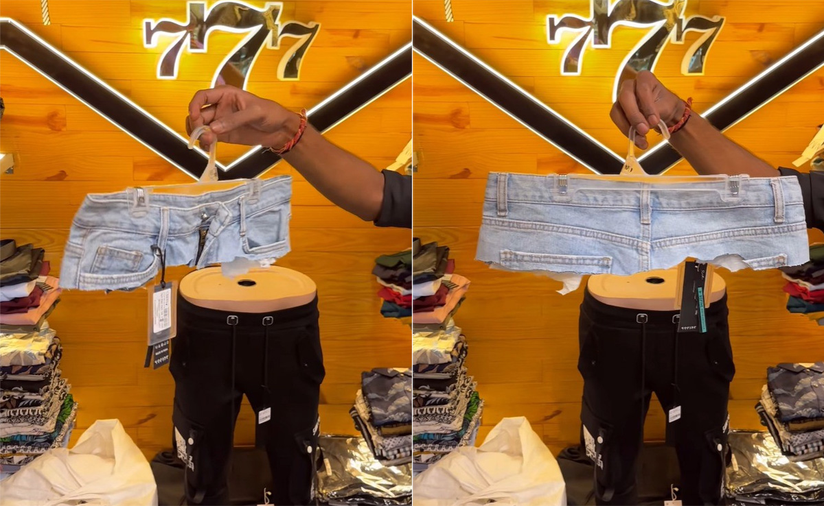 आजकल एक अनोखे डिजाइन की रिप्ड जींस चर्चा में है. यूं तो आपने तरह-तरह की रिप्ड जींस देखी होगी, लेकिन वीडियो दिख रही रिप्ड जींस शायद ही पहले कभी देखी होगी. वीडियो में दिख रही रिप्ड जींस में सिर्फ कमर ही बची हुई है, क्योंकि नीचे का हिस्सा फैशन के चक्कर में पूरा का पूरा काट ही दिया गया है. वीडियो देख चुके लोग पूछ रहे हैं कि, आखिर यह जींस पहनेगा कौन?
