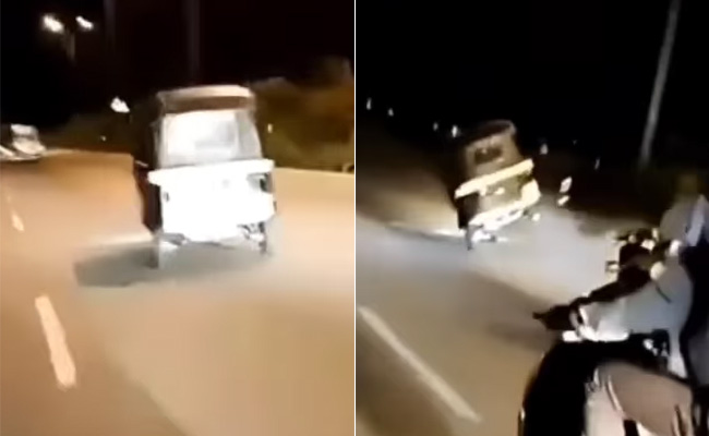 वायरल हो रहे इस वीडियो में ऑटो का अतरंगी ढंग देखकर लोगों के होश उड़ रहे हैं. वीडियो में देखा जा सकता है कि, कैसे एक तेज रफ्तार ऑटो सड़क पर दौड़ रही और गाड़ियों को पीछे छोड़ते हुए आगे बढ़ रहा है. इस दौरान ऑटो तीन से दो टायर पर टेड़ा होकर झटपट दौड़ता नजर आ रहा है. सड़क पर ऑटो को इस तरह चलते देख आसपास के चालक भी हैरान रह गए. वीडियो देखकर अंदाजा लगाया जा सकता है कि, बाइक सवार किसी शख्स ने पीछे से इस वीडियो को कैमरे में रिकॉर्ड किया है.