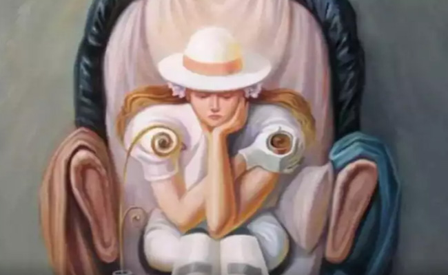 इस तस्वीर में सबसे पहले आपको क्या दिखा, यह जानना बेहत जरूरी है. इस तस्वीर में एक आदमी का चेहरा, एक महिला किताब पढ़ते हुई और एक टेबल-चेयर दिखाई दे रही है.