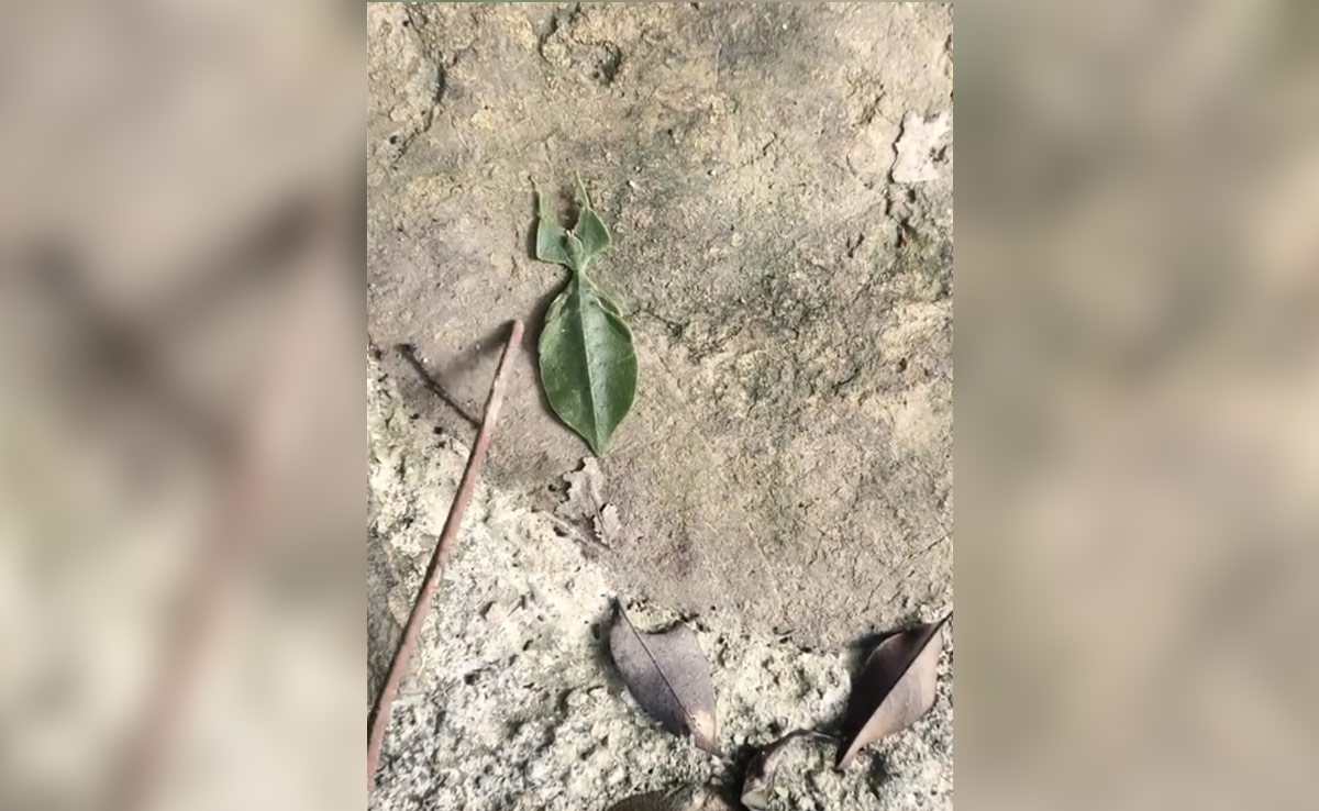 इस वीडियो में देखा जा सकता है कि एक चीज़ हरे पत्ते की तरह दिख रहा है. आप ध्यान से देखेंगे तो आपको हरा पत्ता ही लगेगा, मगर एक शख्स जब लकड़ी से उसे छूता है तो कीड़ा चलने लगता है. सोशल मीडिया पर यह वीडियो वायरल हो रहा है. इस वीडियो को देखने के बाद लोग पूरी तरह से हैरान हो गए हैं.