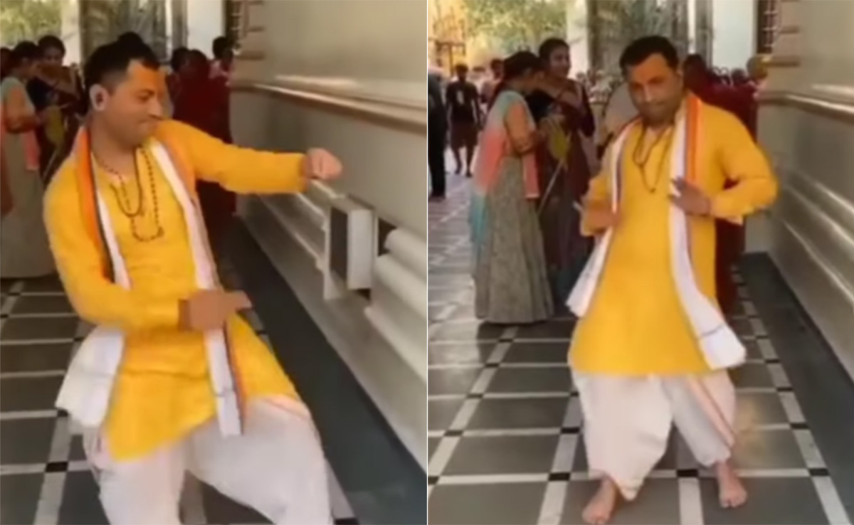 इन दिनों सोशल मीडिया पर ट्रेंड हो रहे इस सॉन्ग पर वैसे तो कई लोग परफॉर्म कर अपने रील्स और वीडियोज बना चुके हैं, लेकिन हाल ही इस ट्रेंड हो रहे सॉन्ग पर एक पंडित जी अपना टैलेंट दिखाते नजर आ रहे हैं. वीडियो में पंडित जी की क्रिएटिविटी देखकर आप भी थिरकने को मजबूर हो जाएंगे. तेजी से वायरल हो रहे इस वीडियो में एक पुजारी की वेशभूषा में नज़र आ रहे है व्यक्ति को ट्रेंडिग सॉन्ग 'Calm down' पर दिल खोलकर डांस करते देखा जा रहा है. वीडियो में पीला कुर्ता पहनें, गले में रुद्राक्ष और माथे पर तिलक लगाए पंडित जी बड़े मजे से थिरकते दिखाई दे रहे हैं.