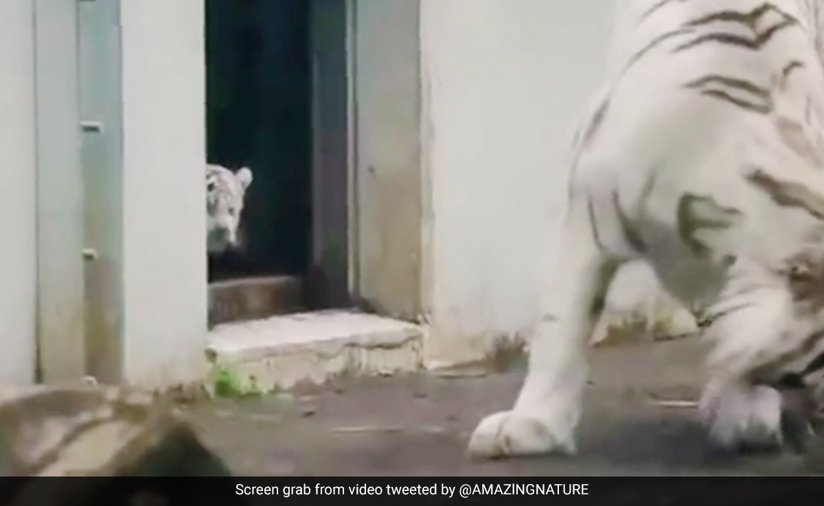 पुराना वीडियो, जिसे @AMAZlNGNTURE ट्विटर पेज द्वारा शेयर किया गया था, एक सफेद बाघ शावक को एक कमरे से बाहर आते हुए दिखाता है. मां का ध्यान कहीं और है. तभी शावक पीछे से उस पर कूद पड़ा और उसे डरा दिया. इस पर उसकी मां चौंककर अचानक नीचे गिर जाती है. पोस्ट के कैप्शन में @AMAZlNGNTURE ने लिखा, "टाइगर शावक चुपके से अपनी मां के पास जाता है."