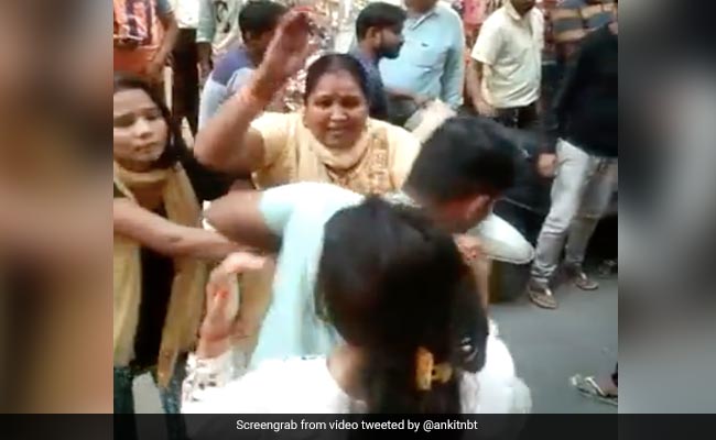बिल्कुल किसी बॉलीवुड फिल्म का सीन लग रहा था, जब एक महिला ने अपने पति को गाजियाबाद (Ghaziabad) के भरे बाजार में पीटा. क्योंकि पति करवा चौथ के दिन अपनी गर्लफ्रेंड के साथ शॉपिंग करते पकड़े गया. घटना का एक वीडियो सोशल मीडिया पर वायरल हो गया है. पत्नी कुछ लोगों के साथ मिलकर पति को कॉलर से पकड़ लेती है और उसकी पिटाई कर देती है. मौके पर भारी भीड़ जमा हो गई.