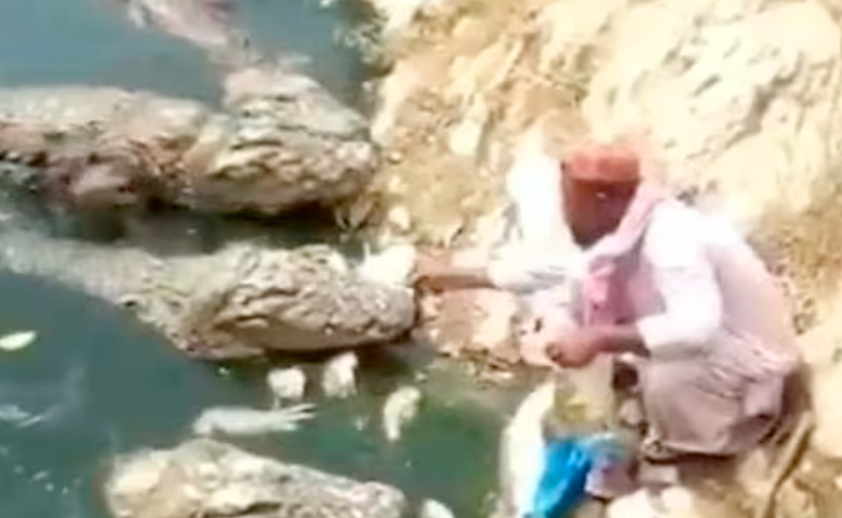 Magarmach Ka Video: पानी का शैतान कहे जाने वाले मगरमच्छ (Crocodile viral video) से इंसान तो इंसान खूंखार जानवर भी दूरी बनाना पसंद करते हैं. मगरमच्छ (magarmach ka video) को यूं तो बेहत खतरनाक और जबरदस्त शिकारी माना जाता है. कहा जाता है कि, यह अपने शिकार को बुरी तरह नोच-फाड़ कर पल भर में गटक लेते हैं. सोशल मीडिया (social media) पर अक्सर मगरमच्छ से जुड़े वीडियोज सामने आते रहते हैं, जिनमें से कुछ में उनको शिकार करते, तो कुछ में शांत घूमते देखा जाता है. हाल ही में एक ऐसा ही वीडियो (Shocking video) सामने आ रहा है, लेकिन हैरानी की बात तो यह है कि, इस वीडियो में एक या दो नहीं, बल्कि चार-चार मगरमच्छ (Crocodile attack) को एक शख्स अपने हाथों से निवाला खिलाता नजर आ रहा है. इस वीडियो को देखकर यकीनन आपकी भी रूह कांप उठेगी.