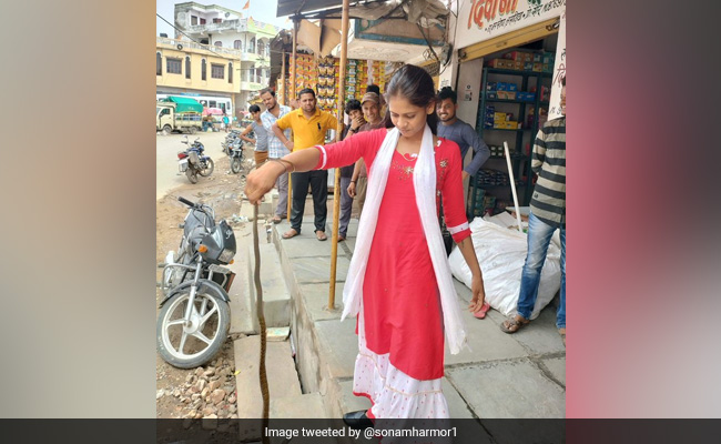 ये तस्वीर खुद सोनम ने ट्विटर पर शेयर की है. फोटो के साथ कैप्शन में लिखा है- बंशीलाल जी चौधरी के दुकान से रेट स्नेक रेस्क्यु कर सुरक्षित जंगल में रिलीज किया गया जिला उदयपुर तहसील लसाडिया (कुन). उन्होंने इस सांप को पकड़ा और फिर उसे जंगल में छोड़ दिया.