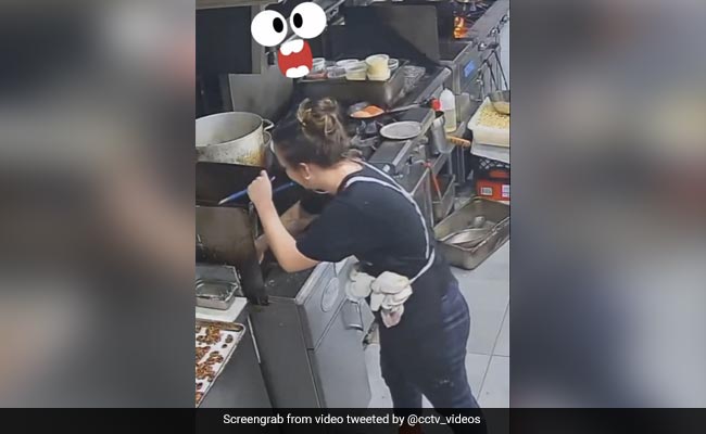 वीडियो में आप महिला को एक रेस्टोरेंट के किचन में खाना पकाते हुए देख सकते हैं. उसने कॉल या मैसेज देखने के लिए अपना फोन अपनी जेब से निकाला लेकिन लापरवाही से फोन फ्रायर में गिरा दिया. फिर उसने गर्म तेल में गिरा फोन निकालने के लिए चिमटे का इस्तेमाल किया.