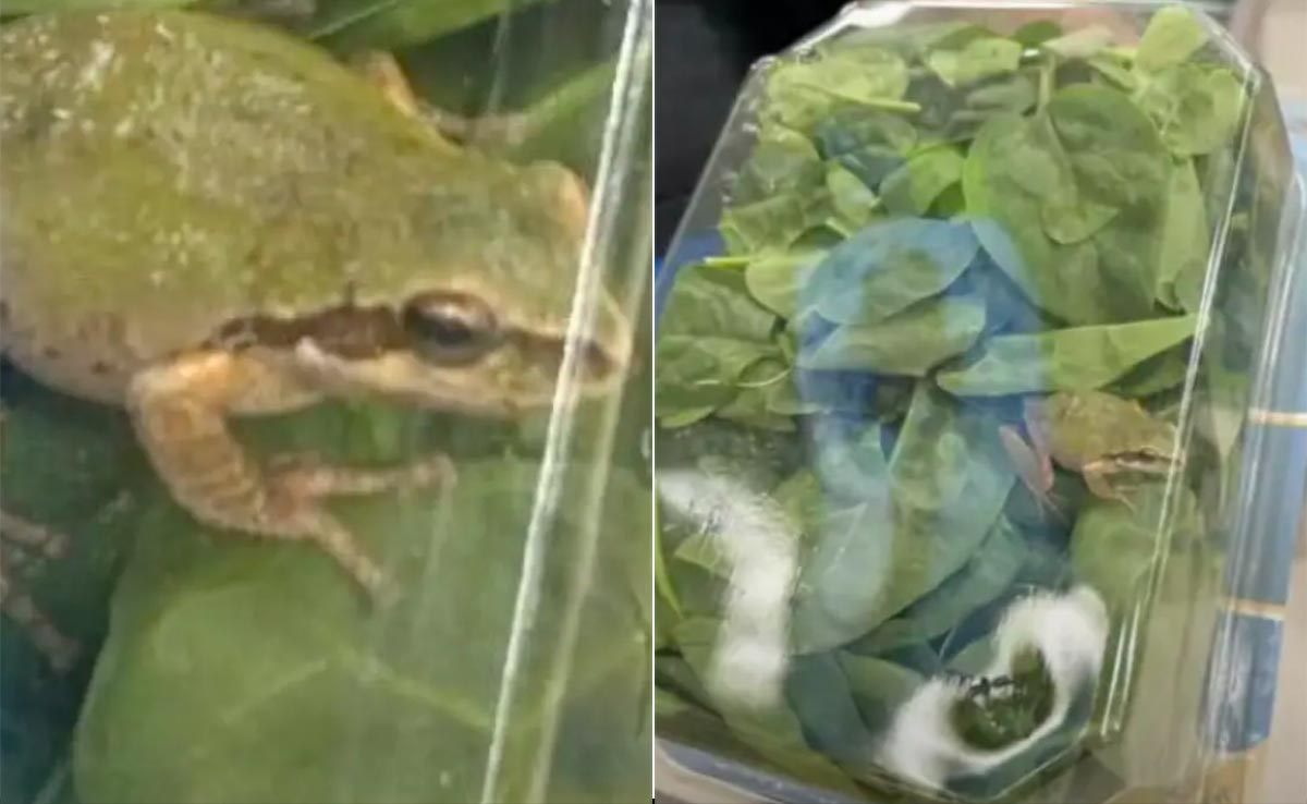 Live Frog Found Inside Spinach Packet: ताजी सब्जियां हमारी सेहत के लिए कितनी फायदेमंद साबित होती हैं, ये तो हम सभी जानते हैं. यही वजह है कि, डॉक्टर भी हमेशा ताजे फ्रूट और सब्जियां अच्छी तरह धोकर साफ कर के खाने की सलाह देते हैं. ज्यादातर लोग रोजाना ताजी सब्जियों को पकाकर या फिर ताजी सब्जियों से बना सैलेड खाकर खुद को तरोताजा और हेल्दी रखने की कोशिश करते हैं, लेकिन सोचिए अगर क्या हो, जब आप बाजार से इन्हीं ताजी सब्जियों को लेकर आए और पैकेट खोलते ही उसमें से निकलती चीज को देखकर आपकी चीखें निकल जाए, तो यकीनन आप भी उससे तौबा कर लेंगे. ऐसा ही एक मामला इन दिनों सोशल मीडिया पर चर्चा का विषय बना हुआ है, जिसके बारे में जानकर आपके भी रोंगटे खड़े हो जाएंगे.