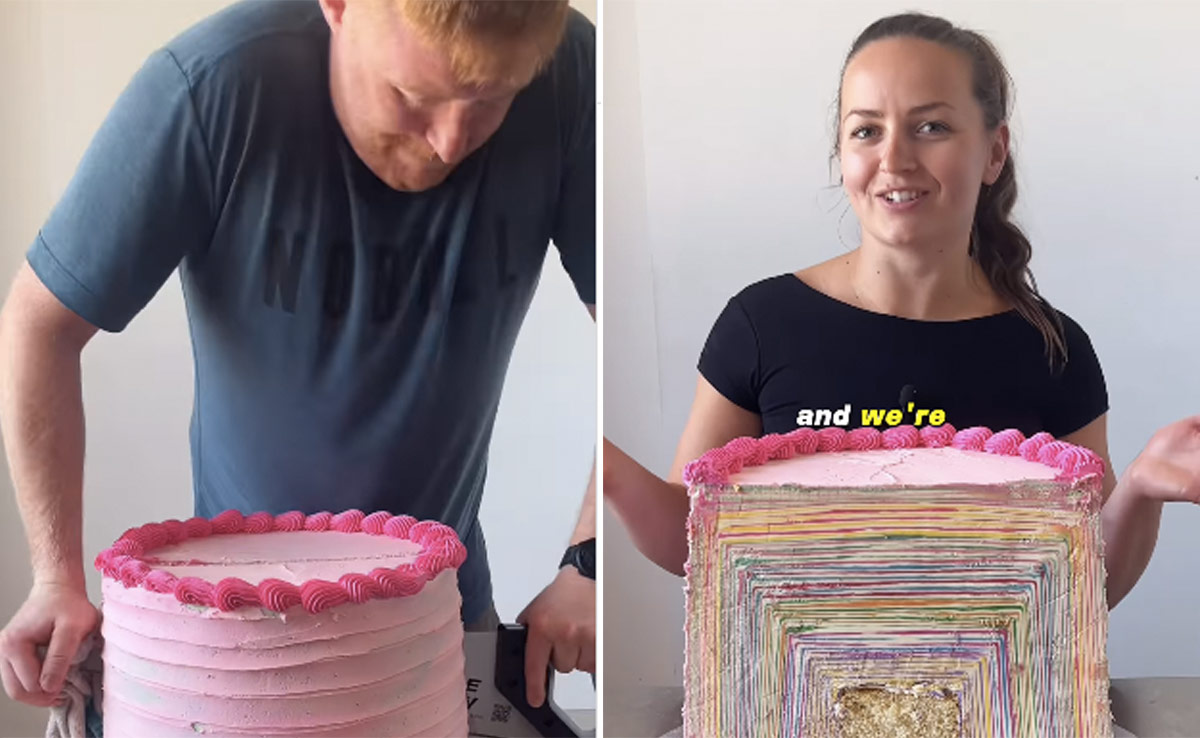 वीडियो की शुरुआत एम्मा के अपना परिचय देने और आइसिंग की 100 परतों को जोड़कर 4 इंच के केक को 13 इंच की रचना में बदलने के बारे में बताने से होती है. उन्होंने बताया कि, केक का वजन 23.3 किलोग्राम है, जो 8 साल के बच्चे के वजन के बराबर है. एम्मा गहरे गुलाबी रंग की आइसिंग से सजे हुए ब्लश गुलाबी केक को दिखाती नजर आती हैं. इसके लिए उन्होंने सामान्य चाकू को छोड़कर, एक विशाल हाथ वाली आरी को चुना, जिसका इस्तेमाल आमतौर पर लकड़ी काटने के लिए किया जाता है. वह केक को बिल्कुल बीच से काटती हैं. जैसे ही वह केक को कैमरे की ओर घुमाती है, आइसिंग की रंगीन परतें नजर आने लगती हैं.