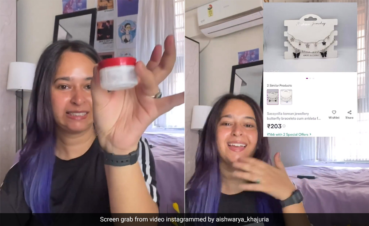 दरअसल, ऐश्वर्या ने वेबसाइट से बटरफ्लाई ब्रेसलेट ऑर्डर किया था, लेकिन उन्हें क्रीम की एक डिब्बी मिली. वीडियो में अजीब घटना का मजेदार विवरण दिया गया है और इसे देखने के बाद आपके लिए अपनी हंसी रोकना मुश्किल हो जाएगा.