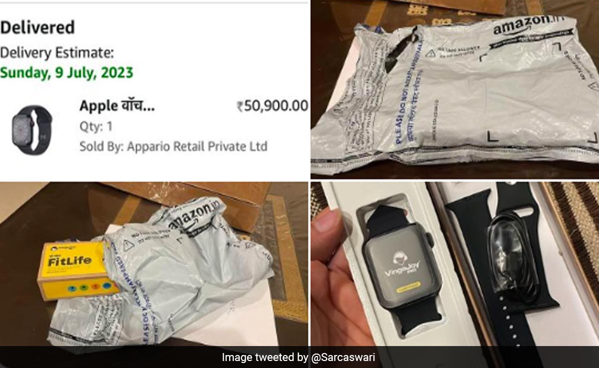 सनाया नाम की महिला ने ट्विटर पर अपने द्वारा दिए गए ऑर्डर और उसे मिले हुए सामान की तस्वीरें शेयर कीं. उन्होंने 8 जुलाई को 50,900 रुपये में ऐप्पल वॉच सीरीज़ 8 का ऑर्डर दिया था. लेकिन वह यह जानकर डर गई कि 9 जुलाई को एप्पल घड़ी के बजाय उसे "फिटलाइफ" घड़ी दी गई. उसने आगे दावा किया कि अमेज़ॅन ने मानने से इनकार कर दिया और अभी तक रिफंड या एक्सचेंज का ऑफर भी नहीं दिया है.