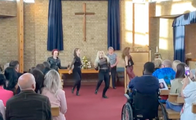 श्मशान घाट पर रिश्तेदार और दोस्त 65 वर्षीय सैंडी वुड को सम्मान दे रहे थे, जब चार डांसर्स वहां आईं और झूमना शुरू कर दिया. लेकिन ये योजना खुद सैंडी द्वारा बनाई गई थी, वो नहीं चाहती थी कि हर कोई उन्हें अंतिम विदाई देते हुए उदास हो.