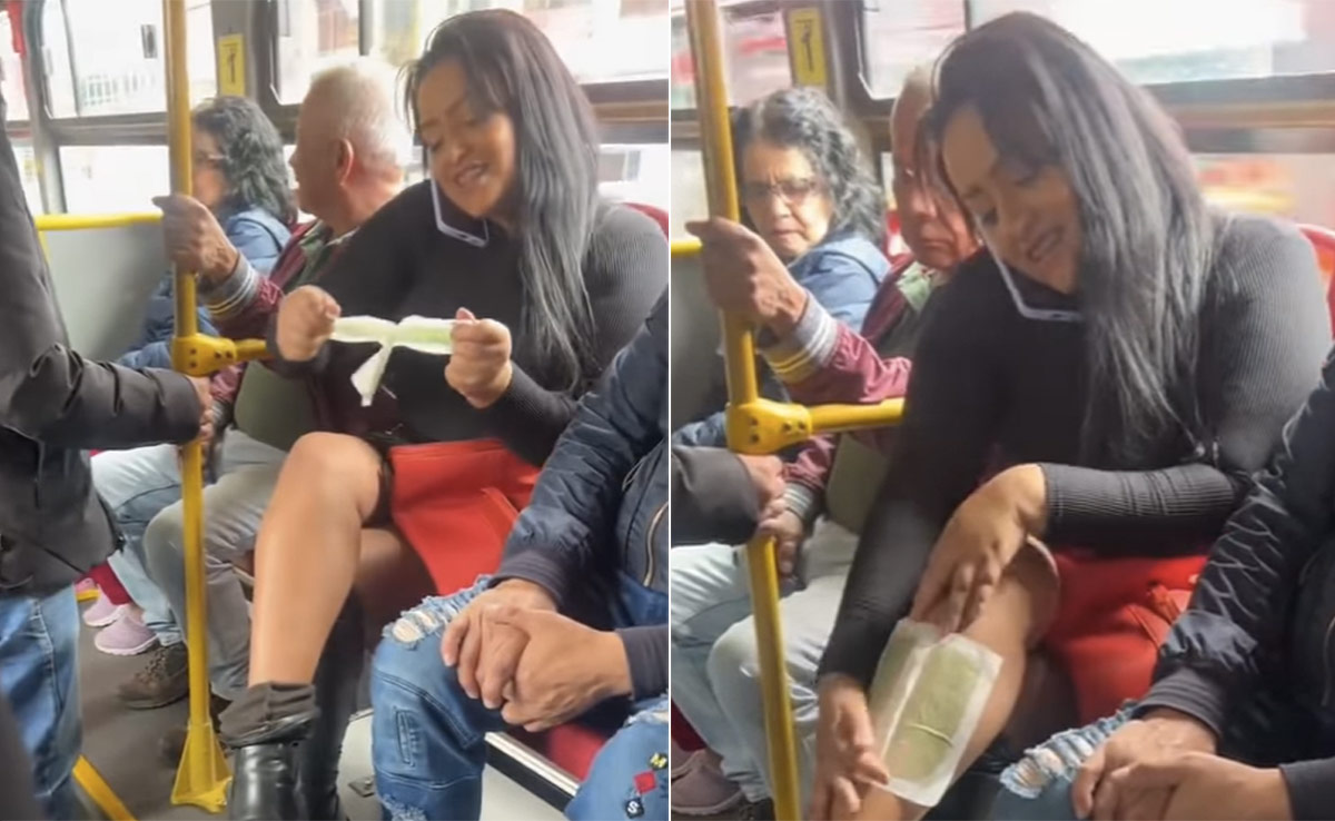 चलती बस में पैरों की वैक्सिंग (Woman waxing on bus viral video)