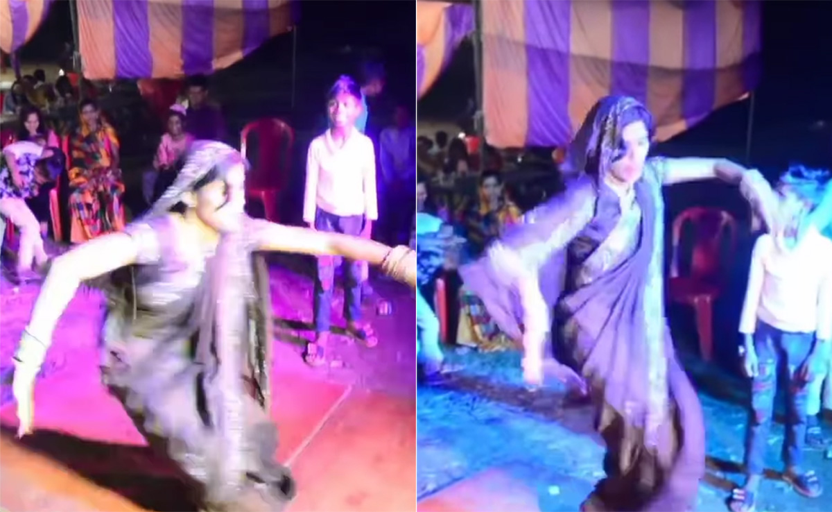 पहली नजर में देखने पर वीडियो किसी पार्टी फंक्शन का लग रहा है, जहां साड़ी पहने और घूंघट ओढ़े एक महिला डांस फ्लोर पर गर्दा उड़ाती नजर आ रही है. महिला फ्लोर पर अपने देसी अंदाज में जबरदस्त डांस करती दिखाई दे रही है. इस दौरान महिला गिर भी जाती है, लेकिन बावजूद इसके वह बिना किसी मदद के उठती है और उसे जोशीले अंदाज में वापस डांस करते हुए वहां मौजूद सभी लोगों का ध्यान अपनी ओर खींच लेती है.