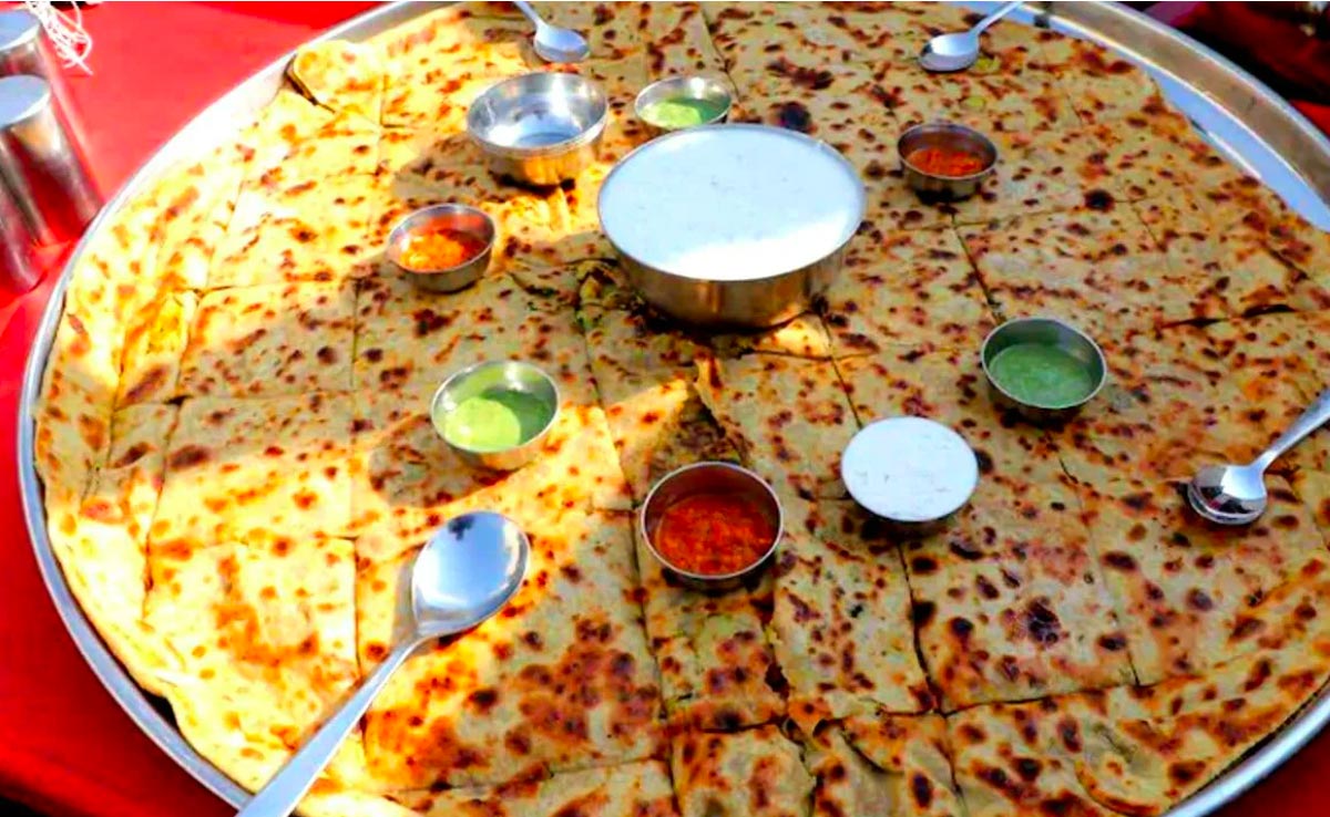Finish Biggest 32 Inch Parantha & Win 1 Lakh Cash: दुनियाभर में खाने के शौकीनों की कोई कमी नहीं है. यही वजह है कि आज गली-गली, नुक्कड़ चौराहों पर खाने की एक से बढ़कर एक वैरायटी मिल जाती है. इन छोटे-बड़े, ठेले वालों से लेकर फाइव स्टार होटल्स तक में लोगों की अच्छी खासी भीड़ देखने को मिलती है. आजकल खाने को लेकर स्ट्रीट फूड वेंडर्स आए दिन नए-नए एक्सपेरिमेंट्स करते ही रहते हैं, जिनमें से कुछ मुंह में पानी ले आते हैं, तो कुछ मुंह का स्वाद खराब कर देते हैं. यही नहीं अपने आउटलेट को लोगों के बीच मशहूर बनाने के लिए और लोगों का ध्यान खींचने के लिए कई रेस्त्रां आकर्षक ऑफर भी निकालते हैं, जिसके लिए वह सोशल मीडिया का सहारा लेते हैं. हाल ही में एक ऐसे ही पराठे की चर्चा जोरों पर है, जिसे लोग पराठा जंक्शन के नाम से भी जानते हैं. क्या आपने कभी लखपति बनाने वाला पराठा खाया है, अगर नहीं तो जयपुर का ये रेस्त्रां आपको एक पराठे के बदले एक लाख रुपए देने का चैलेंज लेकर आया है.