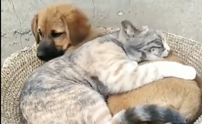 अमूमन ये होता है कि कुत्ते और बिल्ली में कभी भी दोस्ती नहीं होती है. दोनों एक दूसरे से लड़ते-झगड़ते रहते हैं. मगर इस वीडियो में कुछ और ही मामला है. लोगों को ये वीडियो दिल के बहुत ही ज्यादा करीब लग रहा है. सोशल मीडिया पर इस वीडियो को लोग धड़ल्ले से शेयर कर रहे हैं.