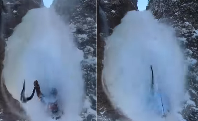 इंस्टाग्राम पर शेयर हुए इस वीडियो में देखा जा सकता है कि, एक पर्वतारोही हिमस्खलन के बीच बुरी तरह फंसा हुआ, अपनी जान बचाने के लिए जद्दोजहद कर रहा है. पहाड़ से बर्फ ऐसे गिर रही है जैसे झर-झर कर झरना बहता हो.सैकड़ों फीट ऊपर किसी तरह इस पर्वतारोही ने खुद को सुरक्षित रखा हुआ है. लेलैंड निस्की नाम के इस पर्वतारोही ने खुद इस स्थिति का वीडियो सोशल मीडिया पर शेयर किया है और अपना एक्सपीरिएंस साझा किया है.