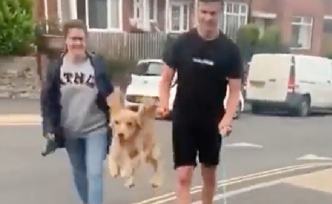 लोग कुत्तों को यूं ही बेइंतहा प्यार नहीं करते. वो होते ही इतने प्यारे हैं जिन्हें देखकर बस प्यार लुटाने का मन करता है. एक ऐसा ही वीडियो इन दिनों सोशल मीडिया की सुर्खियों में छाया हुआ है. ये वीडियो दो कुत्तों का है जिन्हें उनके मालिक सड़क पर घुमाने निकले हैं. वीडियो में नजर आ रहे दोनों हैं तो पेट डॉग ही लेकिन दोनों डॉग्स में जमीन आसमान का अंतर है. एक काले रंग का कुत्ता बिल्कुल सामान्य तरीके से चलता हुआ नजर आ रहा है. लेकिन उसके बगल में गोल्डन कलर के डॉग को देखकर किसी के भी चेहरे पर बड़ी सी स्माइल आ सकती है. दरअसल ये डॉग सड़क पर बिल्कुल छोटे बच्चों की तरह उछलते कूदते हुए चलता हुआ दिखाई दे रहा है. उसके गले पर पट्टा बंधा हुआ है, बावजूद इसके ये डॉग हाई जंप करते हुए अपनी खुशी को बयां कर रहा है. इस हैप्पी डॉग को देखकर ऐसा लग रहा है मानो वो किसी आजाद पंछी की तरह उड़ने की कोशिश कर रहा है.