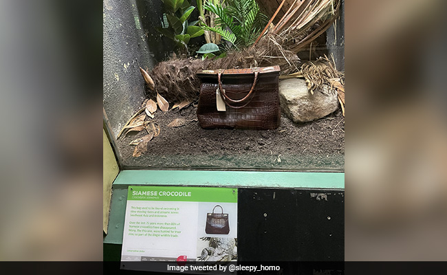 तस्वीर को ट्विटर यूजर टॉम द्वारा पोस्ट किया गया है, जो चिड़ियाघर का दौरा कर रहा था. ताज के रंग के बैग के साथ चिपकाया गया संदेश एक गंभीर बिंदु बनाता है. जिसमें लिखा है, "यह बैग दक्षिण पूर्व एशिया और इंडोनेशिया में धीमी गति से चलने वाली नदियों और धाराओं में तैरता हुआ पाया जाता था. पिछले 75 वर्षों में, 80% से अधिक मगरमच्छ गायब हो गए हैं. अवैध वन्यजीव व्यापार के लिए इस तरह के कई को उनकी त्वचा के लिए शिकार किया गया था.“