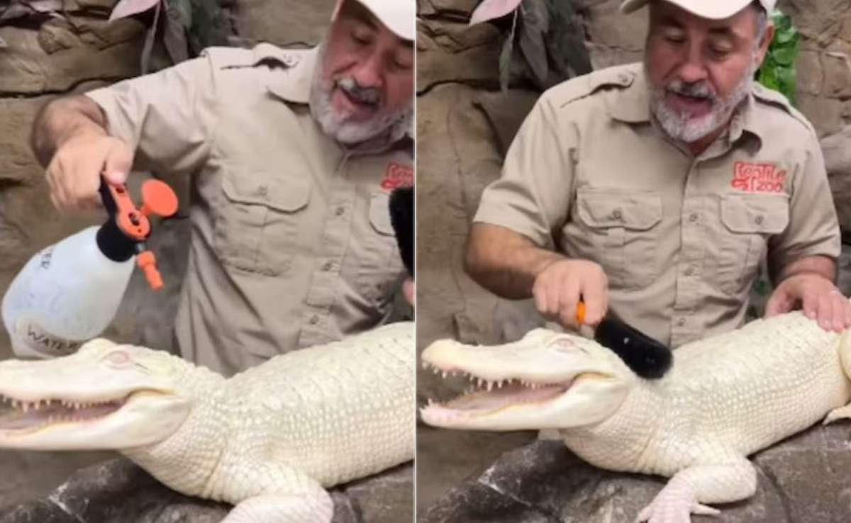 उन्होंने लिखा है, "अल्बिनो गेटोर सफाई ट्यूटोरियल. अपने गैटर को साफ करने से पहले सुनिश्चित करें कि आपके पास सही टूल्स हों. मैं यह सुनिश्चित करने के लिए लंबे ब्रश का इस्तेमाल करना पसंद करता हूं कि मैं वहां से सारी गंदगी बाहर निकाल दूं. फिर ब्रश को धीरे-धीरे आगे-पीछे करता हूं और दोस्तों, आप एक गैटर को इसी तरह साफ करें. कोकोनट बड़ा होता जा रहा है. साफ करने के लिए और भी बहुत कुछ है.'